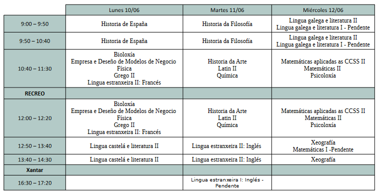 Entra para ver o calendario de exames da convocatoria extraordinaria de 2º de bacharelato.
