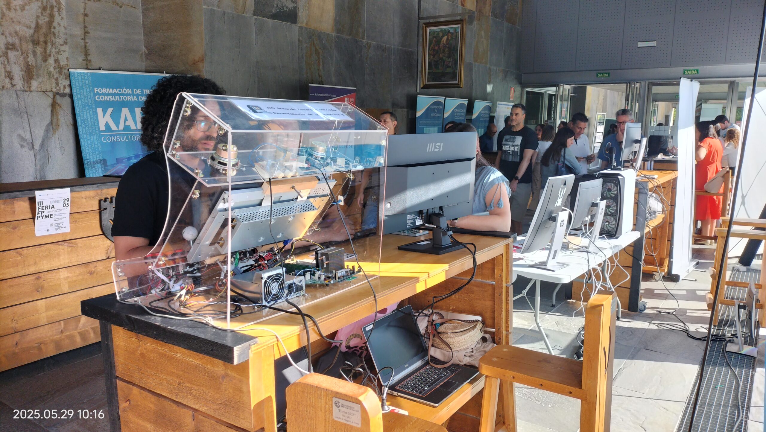 A feira foi un espazo de encontro entre empresas, entidades de formación e estudantes, onde se desenvolveron charlas informativas, mesas redondas, obradoiros prácticos e demostracións en directo. Alí, os nosos estudantes tiveron a oportunidade de intercambiar impresións con profesionais do sector, coñecer as necesidades actuais das empresas e descubrir posibles saídas laborais para o seu futuro.