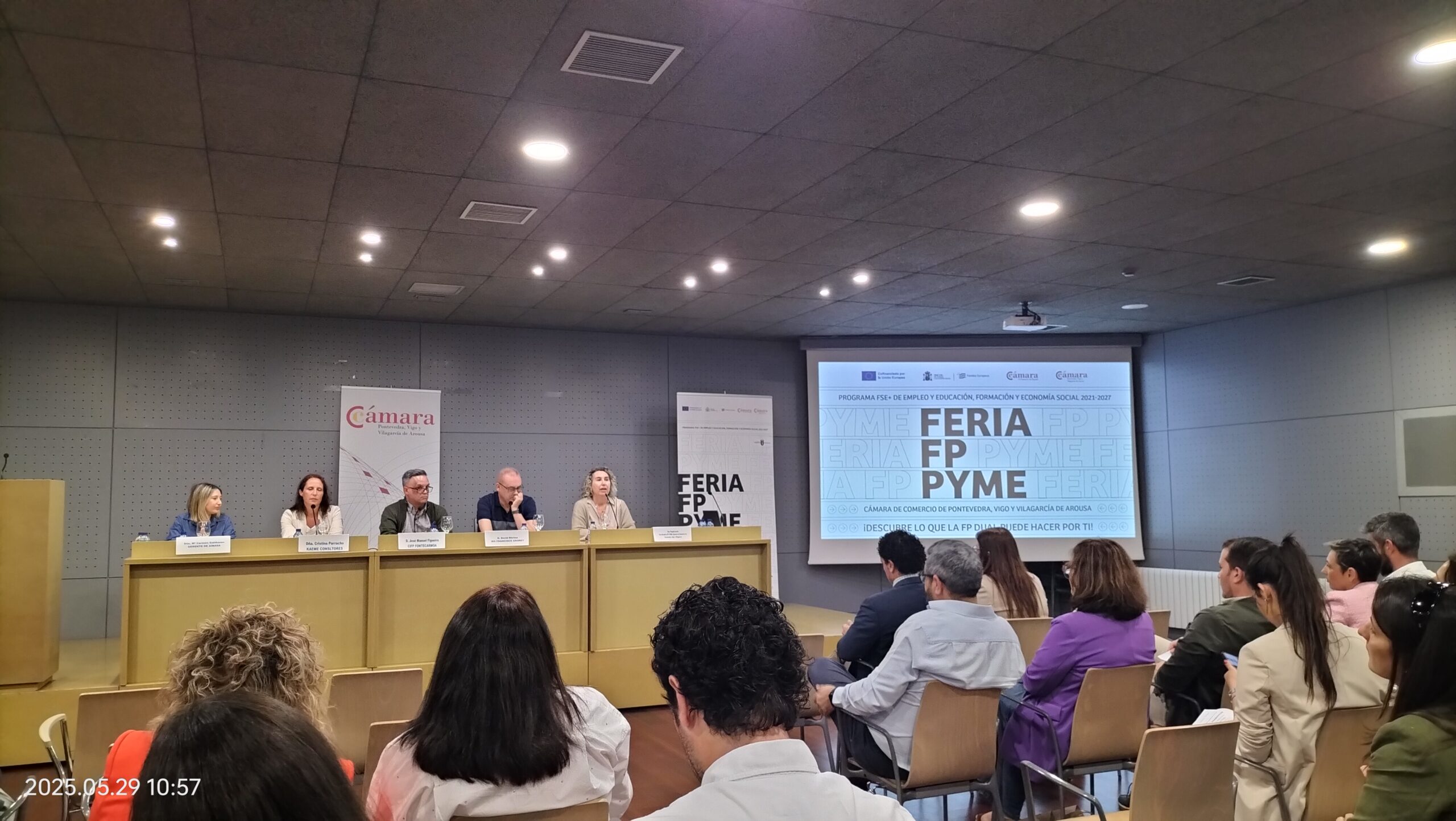 O pasado 29 de maio, o IES Armando Cotarelo Valledor tivo unha destacada participación na III Feira FP PYME celebrada no Auditorio Municipal de Vilagarcía de Arousa. Este evento, organizado pola Cámara de Comercio de Pontevedra, Vigo e Vilagarcía, contou coa asistencia de máis de 200 persoas e tivo como obxectivo principal achegar o alumnado da Formación Profesional ao tecido empresarial da comarca, promovendo así a empregabilidade xuvenil e impulsando a FP Dual como modelo de éxito.